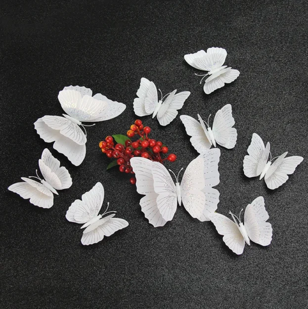 12 Pcs/Set Glitter Butterfly 3D Wall Sticker Kids Room Home Decoration
