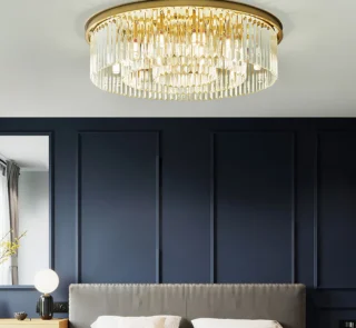 Modern Chandelier Crystal Light Fixture LED Hanging Flush Mount Ceiling Lamp Simple Home Decor Lighting 110-220V 60cm