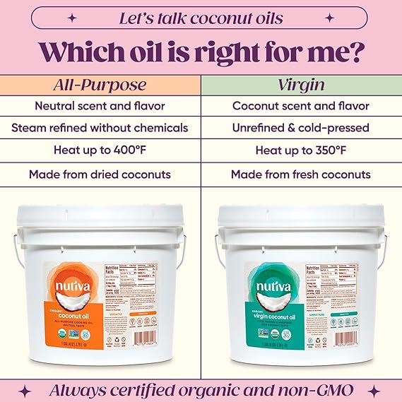 Nutiva Organic Cold-Pressed Virgin Coconut Oil, 1 Gallon, USDA Organic, Non-GMO, Whole 30 Approved, Vegan, Keto, Fresh Flavor and Aroma for Cooking & Healthy Skin and Hair