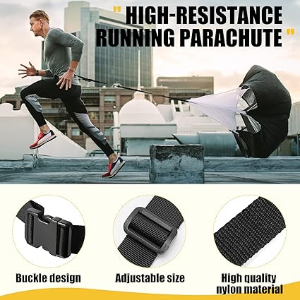 " High-Quality Materials and Durable Design " - The agility ladder is made of high-strength nylon with soft, durable PE rungs for long-term use. The hurdles are made of ABS material and can rotate 180 degrees for easy height adjustment. The training cones are made of PE material, ideal for dodging drills and marking locations. The running parachute is constructed from durable fabric, and the resistance bands are made of high-quality latex, providing stable and continuous resistance.