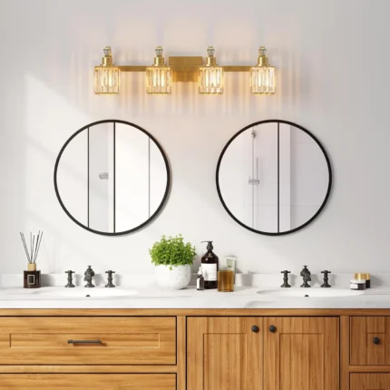 Crystal Vanity Light Fixtures 4-Light Wall Sconces for Bathroom Gold Modern Wall Mount Lanterns Wall Lamp for Mirror Living Room