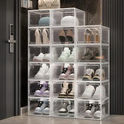 3Pcs Transparent Shoe Storage Boxs Multipurpose Stackable Organization Storage Cases Bags Display Boxs for Home Office Bathroom