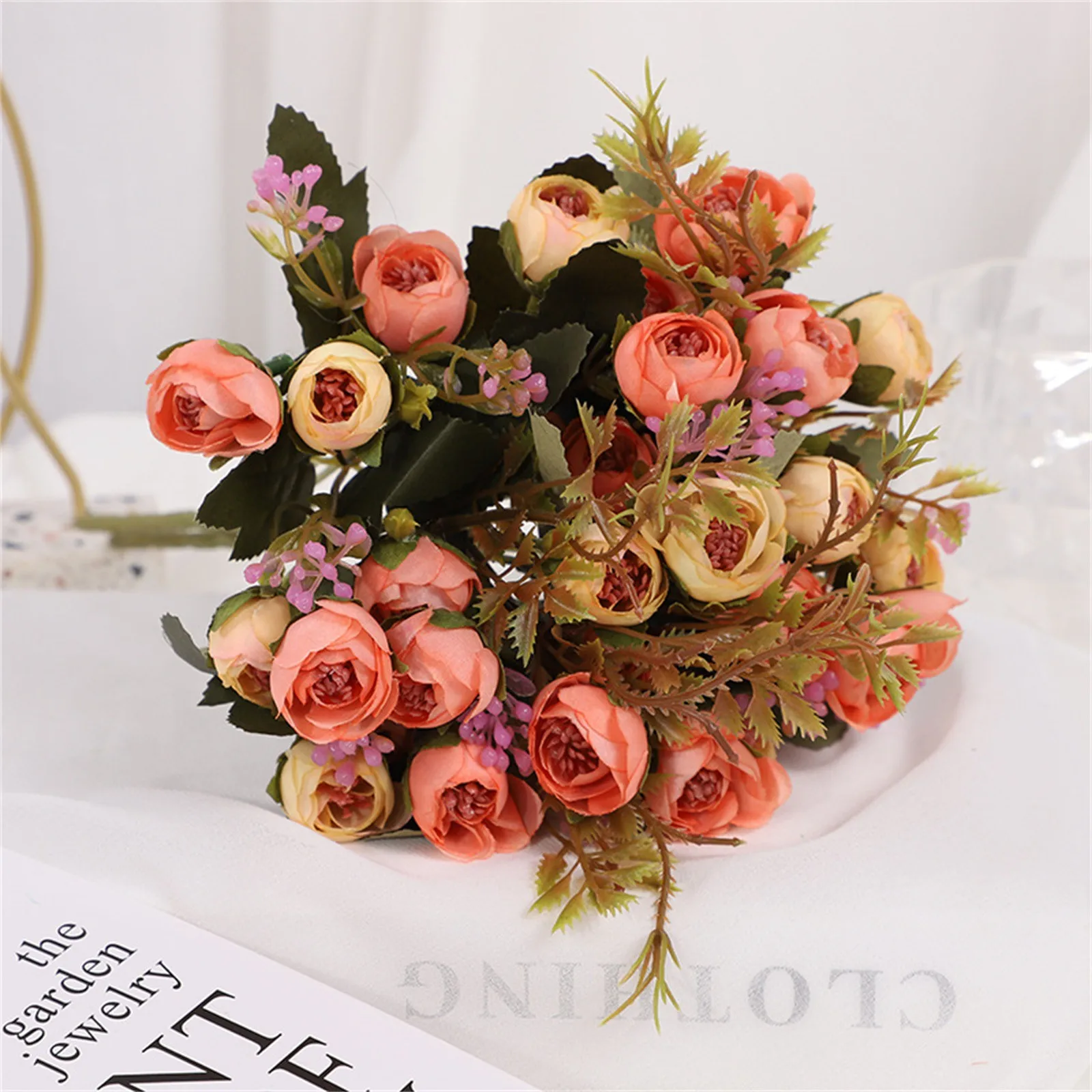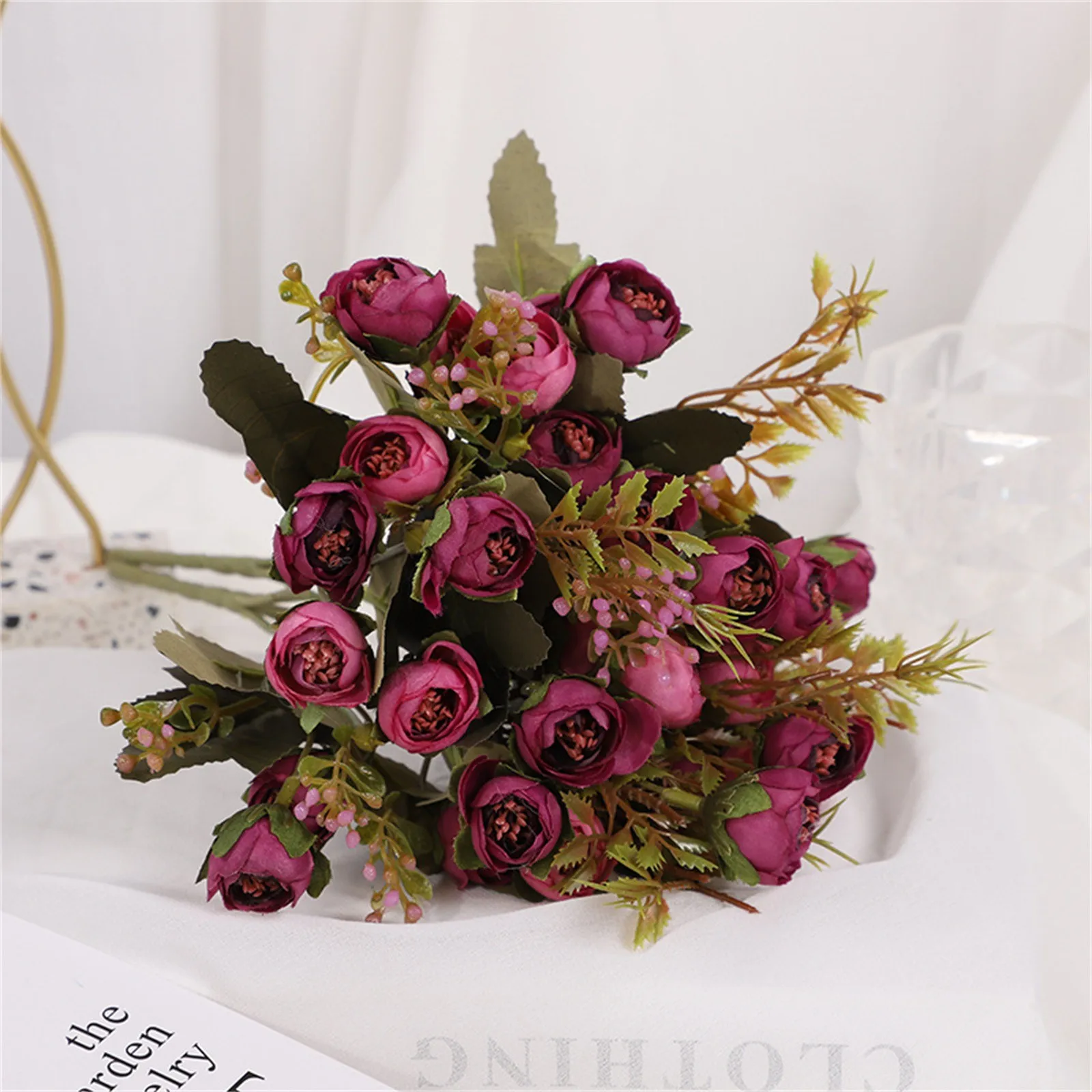 Home Bedroom Decorations 15 Heads Vintage Silk Flowers Retro Tea Roses Artificial Flowers Bride Bouquet For Wedding Decoration Home Fake Flowers A3050