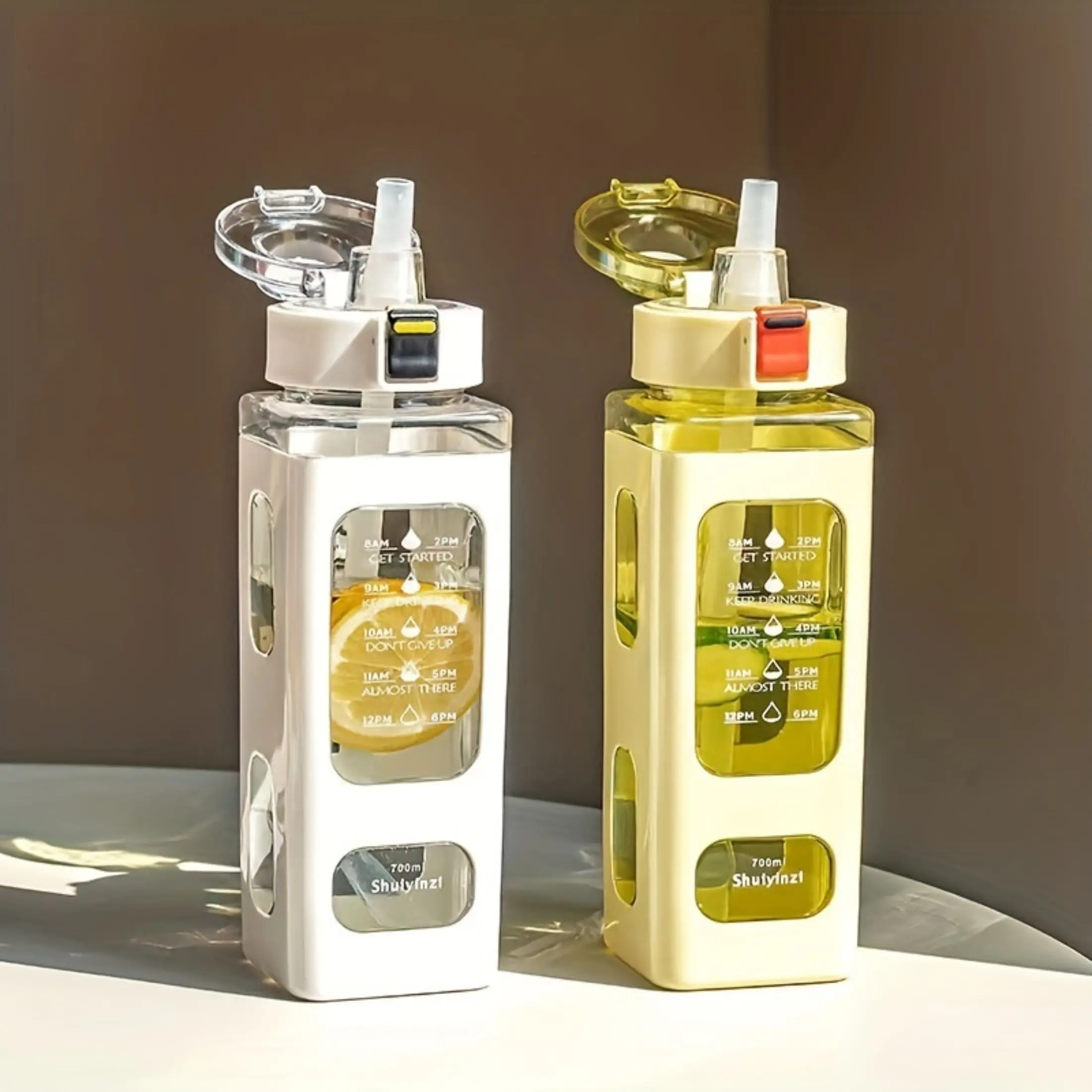 500/750ml Transparent Plastic Water Bottle Time Marker Creative Large
