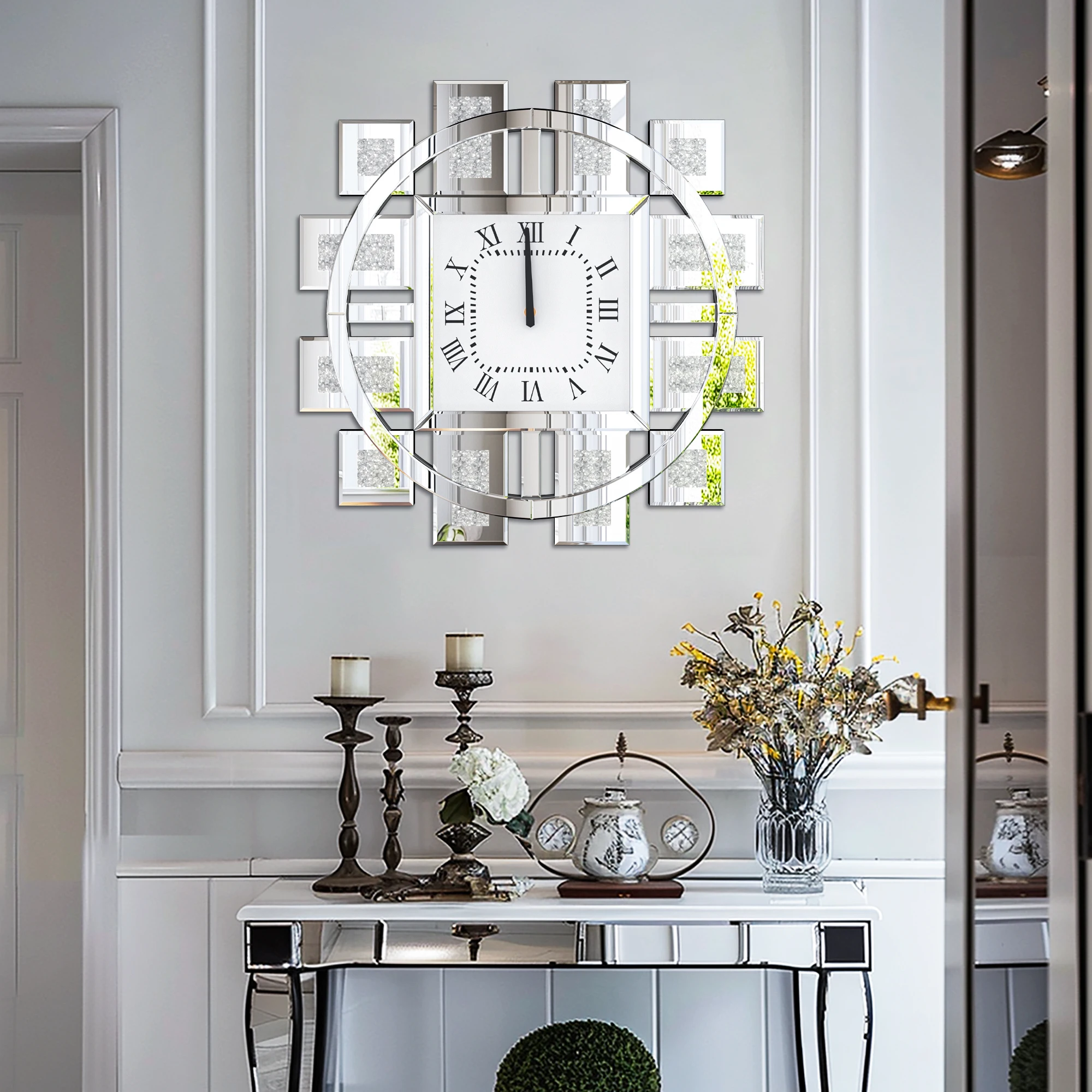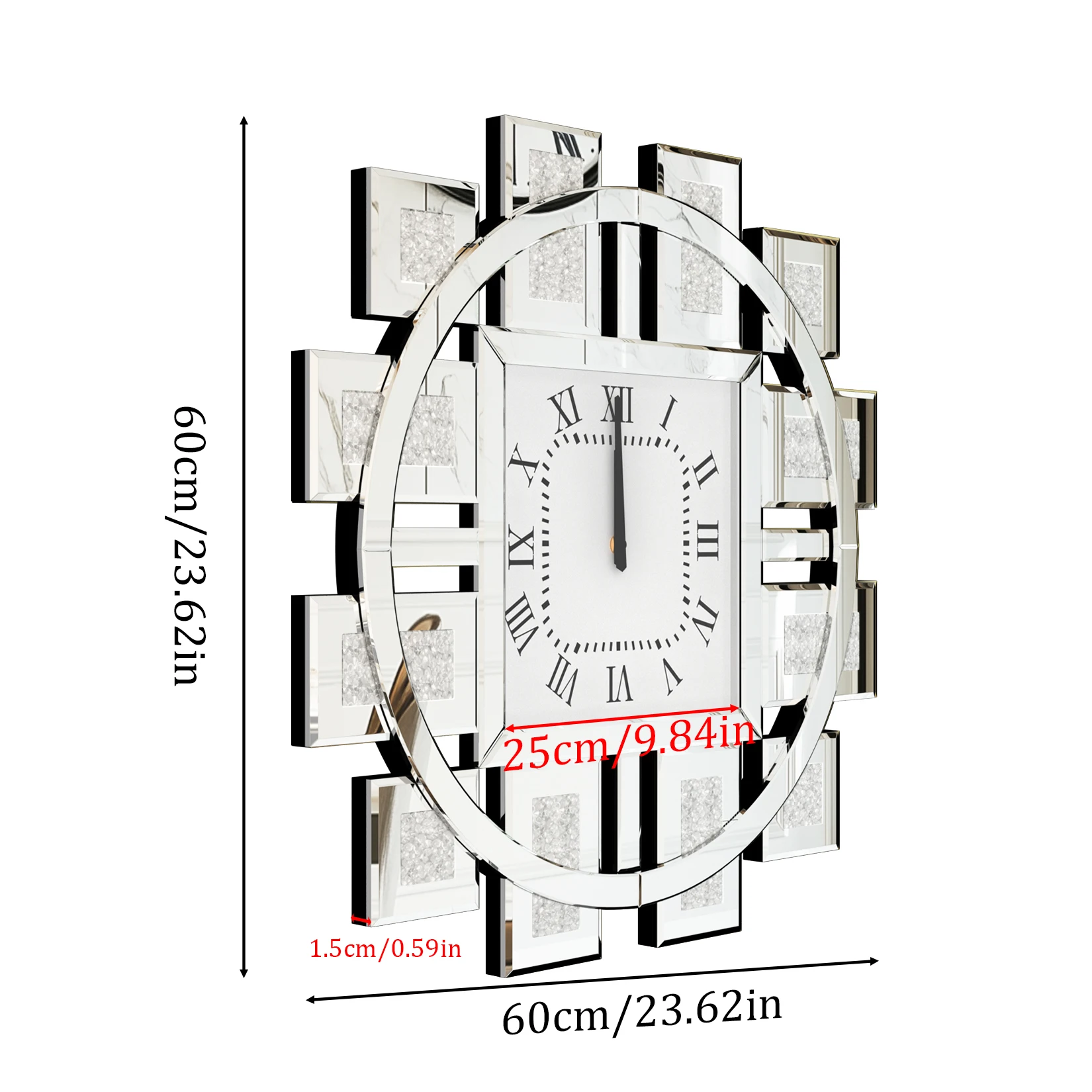 Be the first to review “Irregular Large Crush Diamond Mirrored Wall Clock Sparkle Bling Quartz Clock Roman Numerals for Living Room” Cancel reply