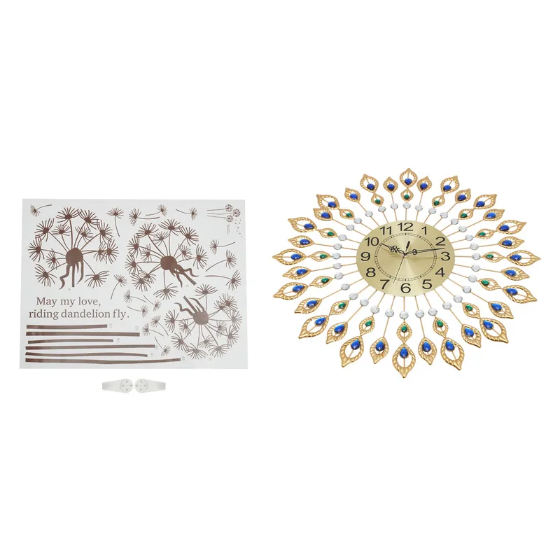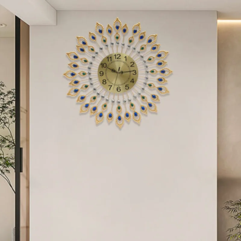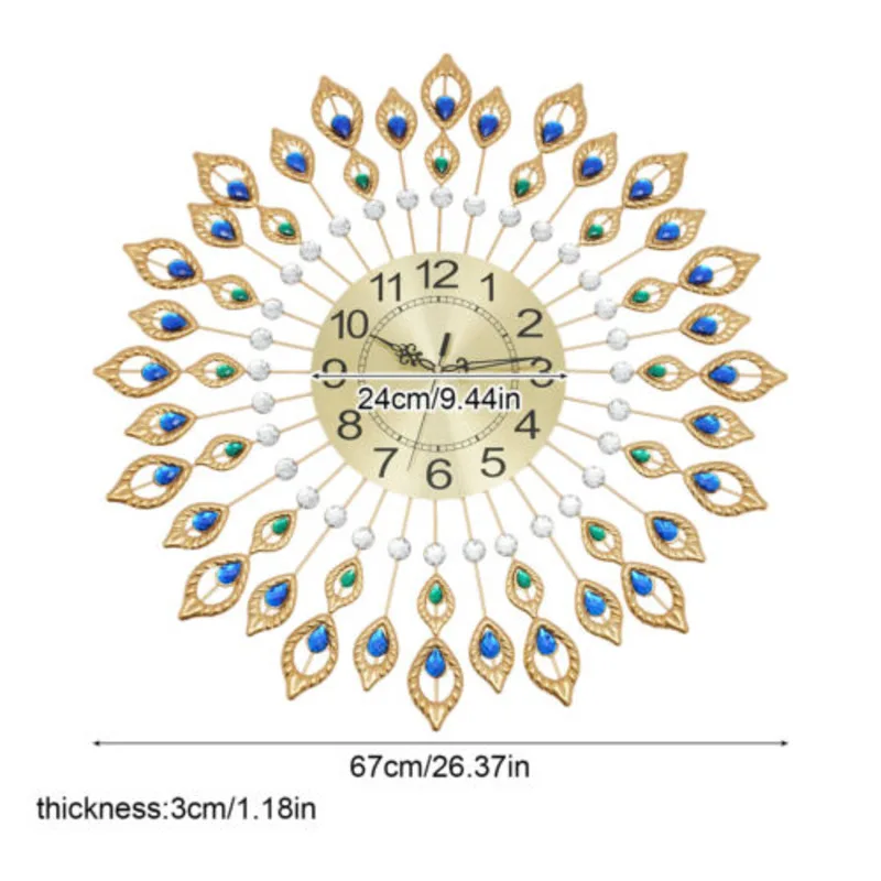 Home Wall Art & Accessories Luxury Large Clock 3D Peacock Retro Wall Decor Digital Clock Modern Art Living Room Decoration