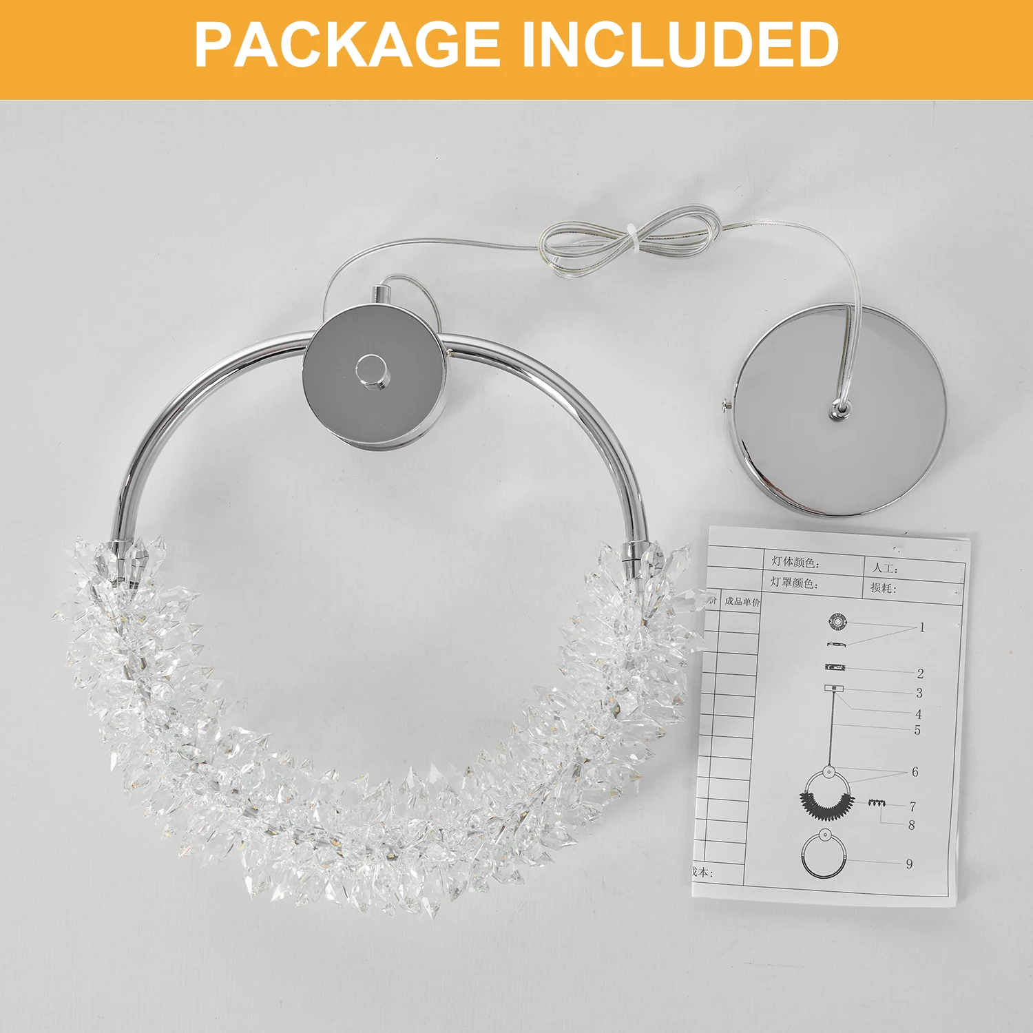 Be the first to review “Modern Crystal Pendant Light Fixture, LED Ring Chandelier with Adjustable Height, Elegant Chrome Finish and Clear Crystal Design” Cancel reply
