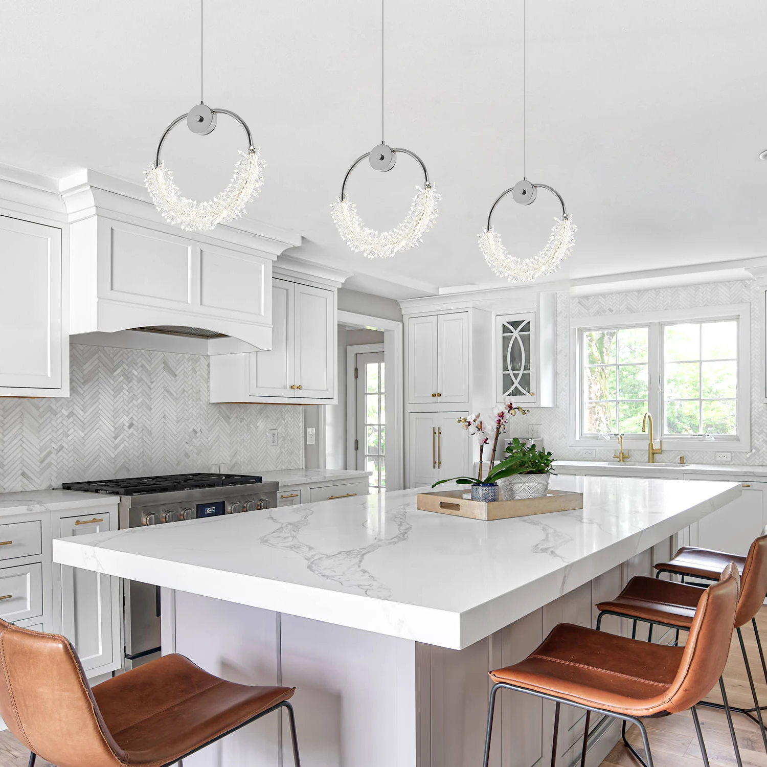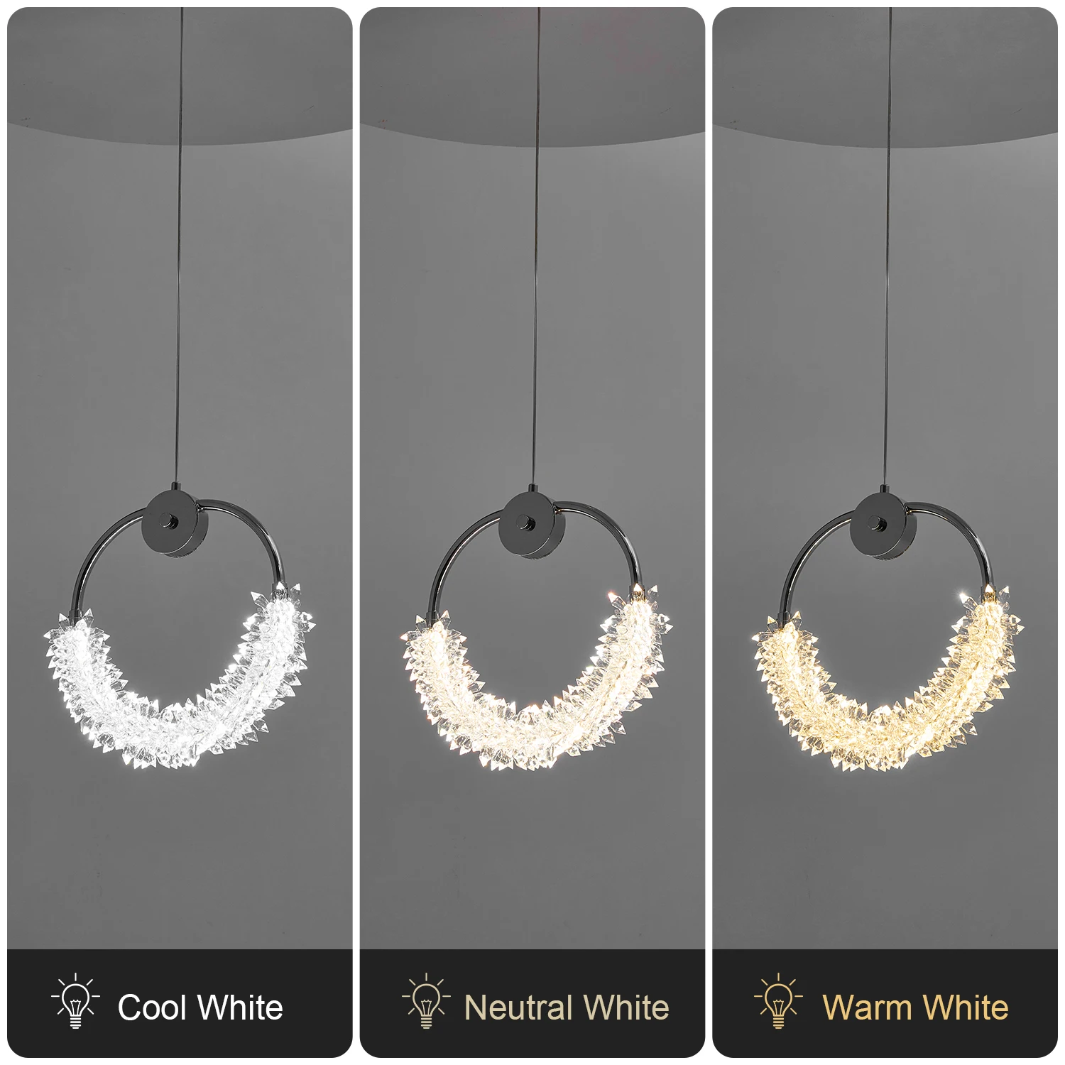 Modern Crystal Pendant Light Fixture, LED Ring Chandelier with Adjustable Height, Elegant Chrome Finish and Clear Crystal Design