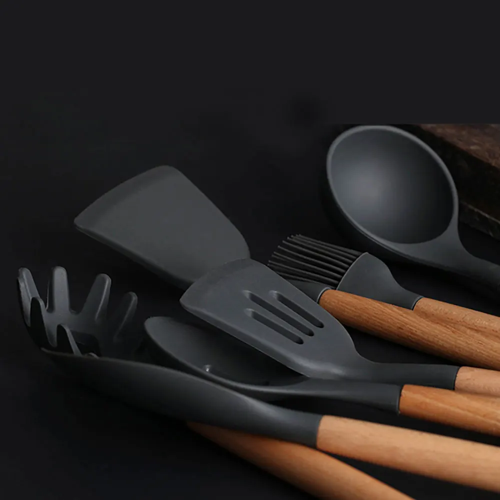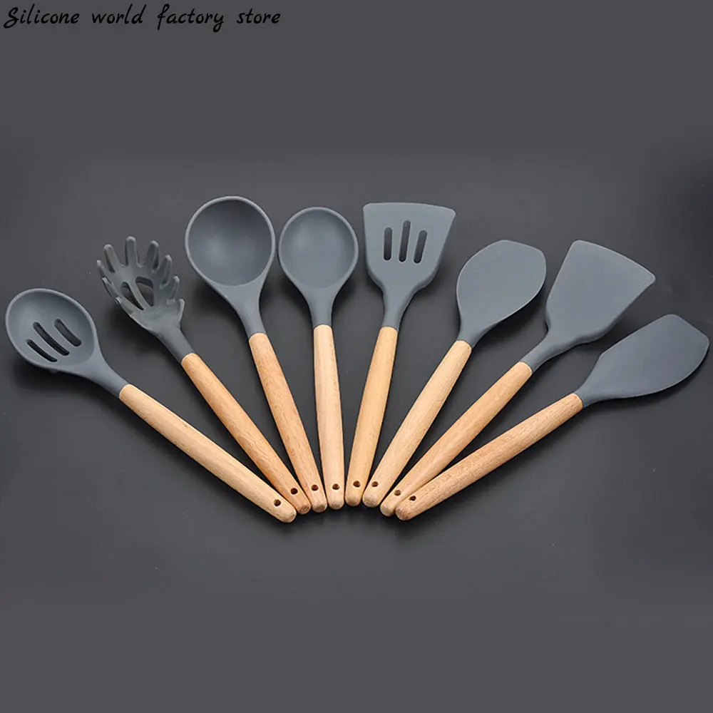Silicone world Cooking Kitchenware Tool Silicone Utensils With Wooden Multifunction Handle